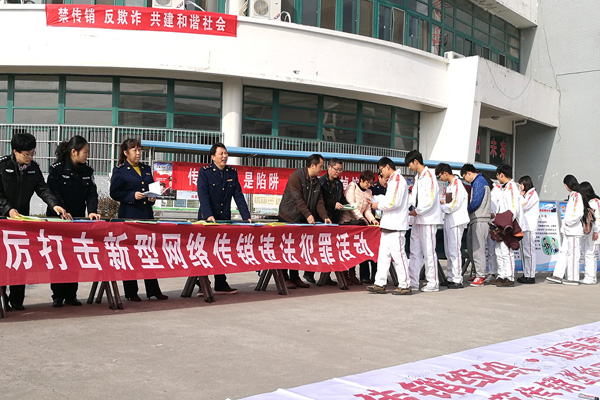 打击违法传销活动,创建美丽和谐校园。同学们纷纷表示,一定要学法、知法、懂法、守法,自觉抵制传销行为,加强自我教育、自我管理,为打击传销违法活动贡献自己的力量。(文/桂骏  图/王晓林)
