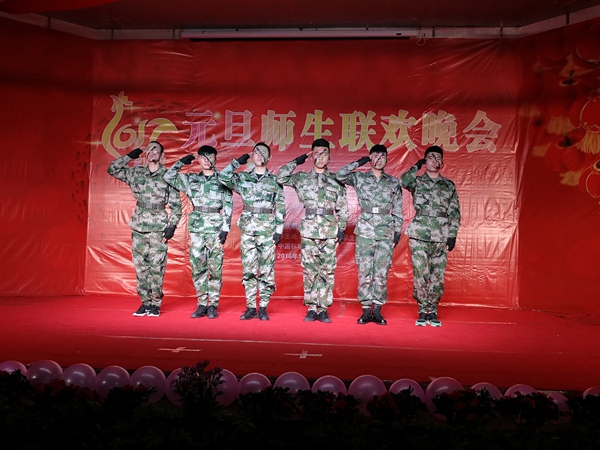 晚会在青春热舞《向快乐出发》中拉开帷幕。歌曲《光辉与友情岁月》、《小城故事》、《一万次悲伤》,师生分别演绎经典、向经典致敬;吉他弹唱《春风十里》娓娓道来诉说大学生美好的情愫;传统相声表演《我要上元旦》中捧哏、逗哏技巧表演得淋漓尽致;原创小品《奇葩招聘会》立意高,师生联袂表演凸显了大学生就业中面临的问题,教育学生在校期间要把握大好时光好好学习;服装及礼仪展示《古往今来·服装礼仪秀》、茶艺表演《茶香悠悠》呈现了学生良好的专业素养,给观众带来美的享受;教师黄梅戏表演《当官难》,让现场观众感受了传统戏曲的魅力和韵味;军体拳表演《永不褪色的迷彩》展现了当代军人过硬的军事素养和良好的精神风貌;动感充满张力的舞蹈《三元素空间》、蒙族传统筷子舞《欢哥》、传统武术及舞狮表演《武·狮》更是嗨爆全场。