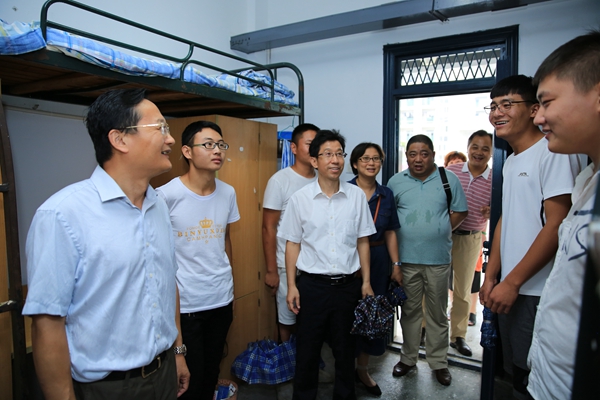 迎新期间,院领导王进、施运华、毕明生、方天祜、占峰、谭维奇到现场了解情况,指导工作,亲切问候参与迎新工作的老师和学生志愿者。6日晚,院领导们前往学生宿舍看望慰问新生。