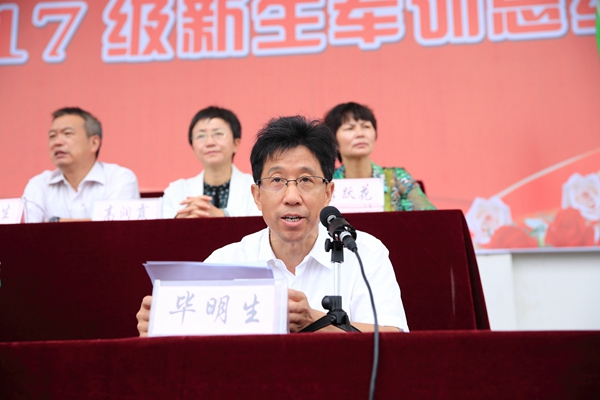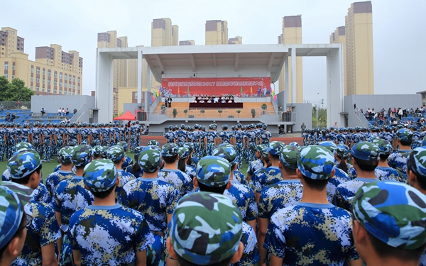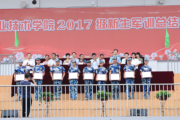 毕明生作总结讲话。他充分肯定了2017级新生的军训成果,向为这次军训付出辛勤汗水的教官们表示了衷心的感谢,向始终服务在第一线的辅导员和其他工作人员表示了诚挚的谢意,向圆满完成军训任务的同学们致以亲切的问候,向受到表彰的班级和军训优秀学员表示热烈的祝贺。他希望同学们把军训过程中形成的优良作风和良好的行为习惯带到新的学习生活中去,勤于学习、努力实践,脚踏实地、积极进取,早日成为德技双馨的优秀人才。