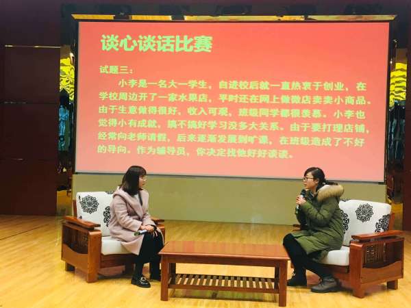 为深入贯彻落实党的十九大精神,加强新时代辅导员队伍建设,推动我院辅导员职业化、专业化发展,从本学期12月20日开始,学院启动了第三届辅导员职业技能大赛。竞赛分笔试、主题班会、案例写作、主题演讲、谈心谈话五个环节。来自全院的26名专职辅导员参加了各环节的比赛。