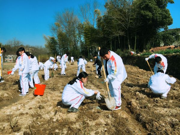 一大早,同学们统一着装,前往宜秀区罗岭镇参加义务种植活动。大家挥锹动铲,挖坑、取苗、栽树、培土、浇水,配合得十分默契。在短短的两个小时里,同学们在原本光秃秃的空地上,种上了一棵棵月季花、紫薇花。虽然一个个满脸大汗,但人人喜笑颜开,个个激情满怀。看着自己的劳动成果,大家的脸上露出了笑容,同学们纷纷表示,今后要为“植绿、护绿、爱绿、兴绿”的良好社会风尚形成出自己的一份力。(文/图  陈颖)