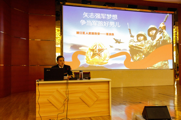 4月25日下午,学院邀请了安庆市迎江区武装部政委潘发良作《矢志强军梦想,争当军旅好男儿》专场大学生征兵宣讲报告,他鼓励同学们带着青春梦想,从校园走向军营,为实现伟大“强军梦”贡献自己的力量。我院600余名学生以及征兵工作站全体老师参加。