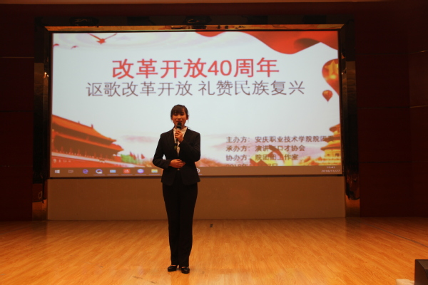 为庆祝改革开放四十周年,院演讲与口才协会在图文信息中心一楼报告大厅举办“讴歌改革开放,礼赞民族复兴”主题演讲比赛。比赛特邀吴紫英、闻胜海、赵晓斌、王晓林四位老师担当评委,近400名学生代表观看了本次比赛。