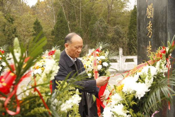 活动中,各单位负责同志向独秀先生敬献花篮,全体人员神情肃穆、鞠躬缅怀。最后,同学们在独秀先生的雕像前合影留念。同学们表示:今年是五四运动100周年,作为新时代的大学生,我们每个人都应该学习独秀先生敢于创新、勇于挑战的昂扬精神,自觉肩负起振兴中华民族的伟大历史使命,争做合格共青团员,通过此次活动感受到了自己身上肩负的伟大使命与责任。