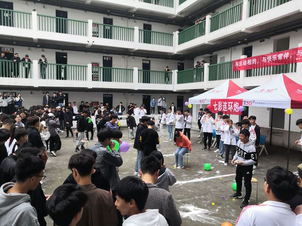 学生公寓文化艺术节开幕式后,由机电工程学院团总支学生会承办的“与你相‘寓’,一见钟‘寝’”趣味运动会在1号公寓楼和2号公寓楼正式开始。本次趣味运动会经过前期精心策划组织,设有应知应会(党史知识、学生公寓文化知识竞答)、弹无虚发、七彩连环炮、跳动的节奏、拔河PK、六人七足等项目。各项目挑战与趣味兼具,竞技与娱乐并存,既考验学生团体协作能力,又展示学生的竞技热情。活动期间,现场掌声、笑声、欢呼声此起彼伏,欢快又和谐。