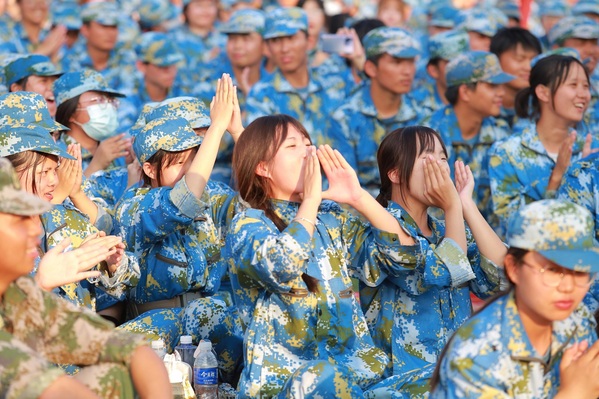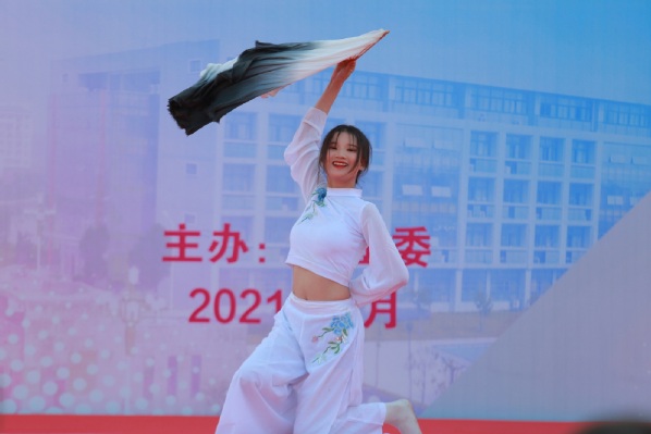 联谊会在一支动感的现代韩舞中拉开帷幕。婉转动听的女生合唱《稻香》、黄梅戏经典对唱选段《对花》、唯美优雅的古典舞蹈《蕃社姑娘》、嗨翻全场的Rap演唱等节目,展示了2021级新同学的多才多艺和青春活力,赢得了现场的阵阵掌声;悠扬的吉他弹唱《等你下课》、精彩绝伦的模特走秀、气势磅礴的朗诵《百年颂歌》等老生节目,为在场师生上演了一场视听盛宴,表达了学姐学长对新同学们的诚挚欢迎;新生辅导员老师赵晓彬献唱的《琵琶行》、军训教官们表演的军体拳更是将联谊会的气氛推向了高潮。联谊会的最后,军训各营队互动拉歌,激昂澎湃的军歌响彻云霄,为联谊会画上圆满句号。