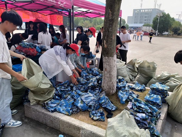 活动结束后,青年志愿者协会的志愿者们第一时间对收集到的军训服装进行了清点、整理和打包,并联系安庆邮政分公司双爱志愿者队将捐赠衣物收走。