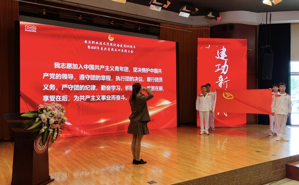 会上,73名新发展的团员学生集中进行了入团宣誓,团员学生展示了精彩的舞蹈和朗诵表演。在全场师生齐声共唱《光荣啊,中国共青团》的合唱中,表彰大会落下帷幕。