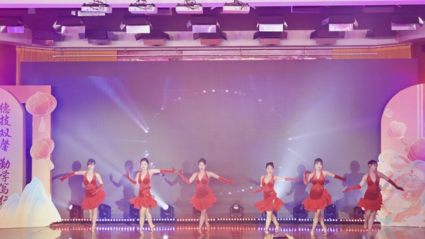 兄弟院校同学表演的相声节目《05后的烦恼》,以风趣诙谐幽默的语言,逗得观众们捧腹大笑;歌舞《采茶纪》融合了长笛演奏、歌曲演唱、舞蹈伴舞三种形式,笛音悠扬,歌声婉转,舞姿婀娜,带来视听双重享受;拉丁双人舞《兰亭集序》将书法之韵与舞蹈之美完美结合,尽显国风音乐和现代舞蹈;歌曲《河流》旋律激昂,如汹涌浪潮般冲击观众的心灵;民族舞《落春踏雪》用优美的舞姿展现出独特的民族风情,令人陶醉;《百年交响》的朗诵者慷慨激昂,回顾百年峥嵘岁月;舞蹈《我最红》以动感活力燃爆全场,展望2025年继续红红火火。