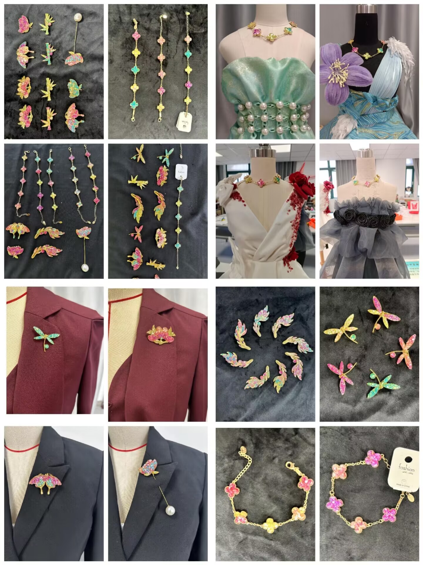 在随后的制作环节,同学们领取了材料包,在各部长的耐心指导下,开始了自己的螺钿创作之旅。大家认真挑选螺钿碎片,精心设计图案,再将其镶嵌、粘贴在底托上。经过两个小时的努力,一件件精美的胸针、手链诞生。
