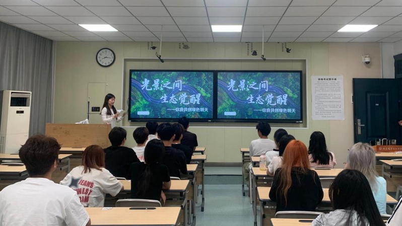 生态环保主题以世界环境日为契机,将“绿水青山就是金山银山”理念深植同学们的心中。苗雨欣同学以《种地吧》综艺为切入点,深入剖析了生态环境的重要性,指出全球气候变化、本土生态问题以及生态破坏对人类社会产生的深远影响,生动展示光伏治沙、电子废弃物回收等中国方案,呼吁同学们从衣食住行践行低碳生活。在“自然‘叶’章,‘花’启新程” 活动中,同学们用利用掉落的花和叶子等自然材料进行手工制作,培养参与者的创造力与团队协助能力,体验循环利用的魅力,营造和谐共生的生态环境。