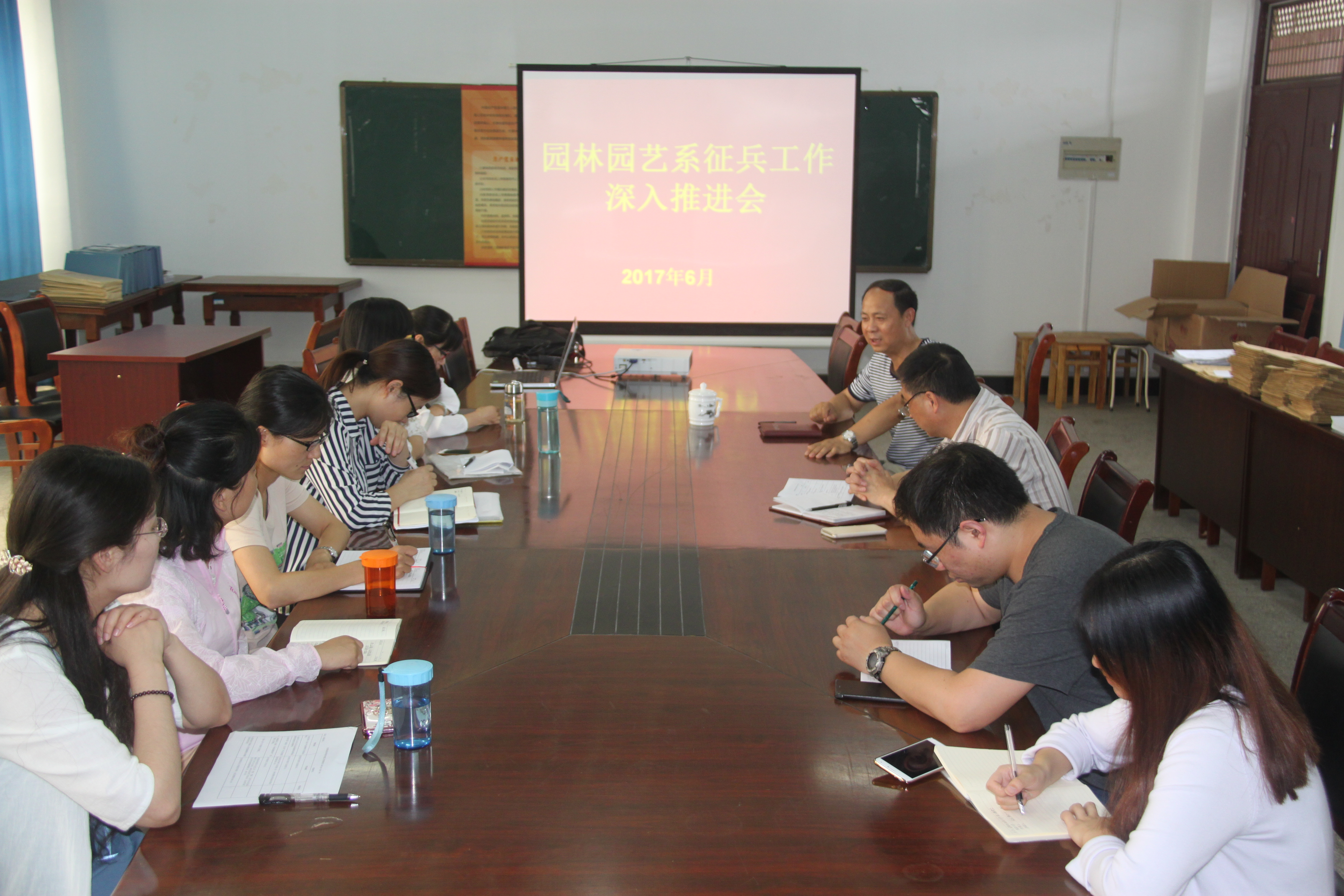 为进一步推进学院征兵工作,615日,园林园艺系召开征兵工作深入推进会议,系部负责人毕璋友出席会议,该系分管学生工作负责同志张宏书记以及全体专兼职辅导员参加了会议。