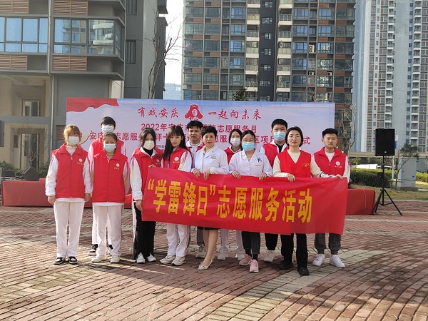 3月5日安庆市志愿服务联合会雷锋月启动仪式上,我院青年团员们积极听从现场任务分配,在社区外面组织引导人群有序开展活动。开幕式结束后,参与并帮助社区老人们免费测量血压、检测视力、维护现场秩序等。