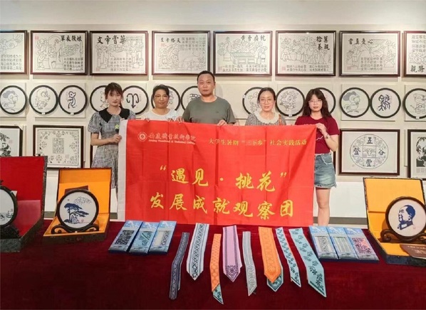 本次实地调研,团队成员直观地感受了望江挑花的魅力,受到了非遗文化的“滋养”,并对望江挑花工艺当前发展情况进行了深入了解,激发了其参与到望江挑花工艺传承队伍中的热情。(文:褚诗茜 图:曹庆琳、胡婧 审稿:许咏梅)