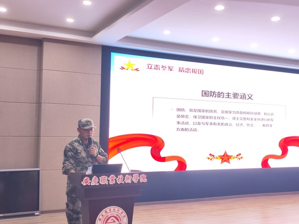一片丹心图报国,千秋青史胜封侯。刘鸣士官以习近平总书记给安徽省潜山野寨中学新考取军校同学的回信激励青年学子为开篇,详谈国防教育的内涵与重大意义。同时也分享了自己应征入伍的经历和在部队的成长历程。他的宣讲和成长故事,让现场的学生深刻感悟到:三更灯火五更鸡,正是男儿立志时。只有怀揣着民族复兴、报效祖国的崇高志向,才能有“苟利国家生死以、岂因祸福避趋之”的报国情怀,才能有“壮志饥餐胡虏肉、笑谈渴饮匈奴血”的精忠报国,才能有“使于四方、不辱君命”的民族气节。华中路街道武装部部长朱昉以今年暑期应征入伍的两名农林学子为例,就大学生征兵入伍的相关政策系统的为同学们作了讲解,并从个人成长、升学、就业等方面对退役士兵的优抚政策进行了分析和解读。