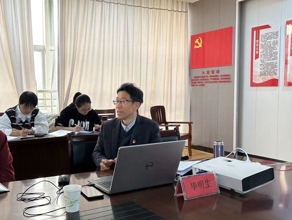毕明生在讲课时说,作为高等教育工作者,我们一要坚持联系实际,深入学习贯彻习近平新时代中国特色社会主义思想的科学体系;二要深入学习习近平新时代中国特色社会主义思想的世界观、方法论和贯穿其中的立场观点方法;三要感悟思想伟力,凝聚奋进力量,以学促干,以高质量党建引奋力推进学校事业高质量发展。
