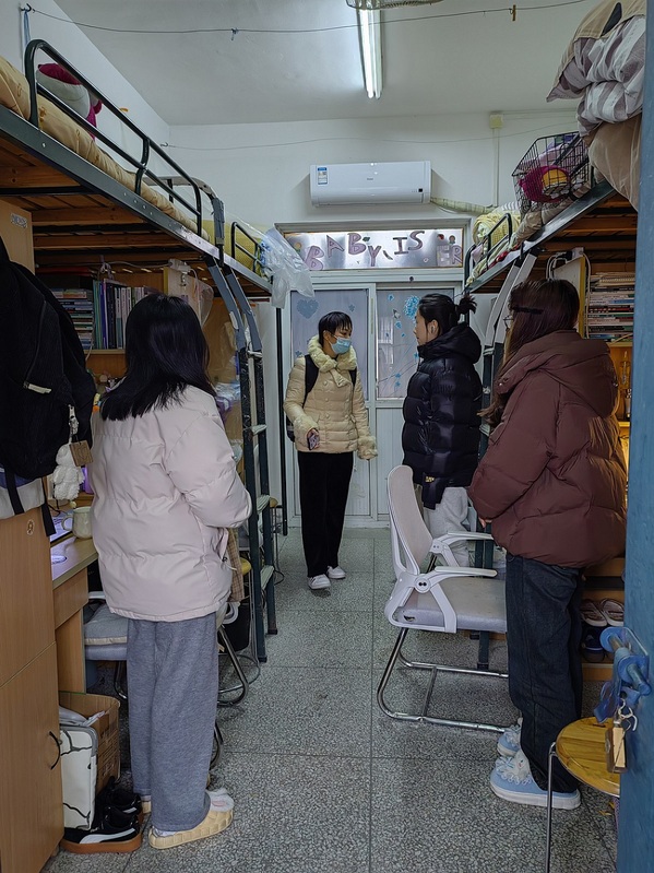 在走访过程中,辅导员老师与同学们进行了亲切的交流,询问同学们的学习生活及身心健康状况,对同学们的疑惑进行了耐心解答,嘱咐同学们在宿舍要相互关心、相互帮助,共同营造良好的学习、生活环境,提醒同学们注意人身安全、财产安全、用电安全。各班辅导员详细了解了学生寒假生活情况,叮嘱同学们要将假期状态转换到学习状态,调整好自己的心理状态和生活节奏,制定好本学期学习生活计划,丰富自己的大学生活。