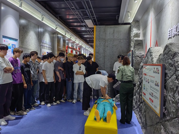 整个流程以防、疏、逃、救为脉络,同学们亲自拉响手摇式防空警报器,挨个钻进火灾模拟现场体验逃生场景,上手学习心肺复苏实际操作,整个过程学生们积极参与。最后的化学危险品识别、家庭安全隐患查找、城市洪涝等七大互动体验馆,更是让同学们身临其境的成为安全隐患排查员,实践中加深各类安全知识。有趣的人防主题画作、丰富的互动体验馆,为参观过程增添了不少的色彩和生机,同学们一边观察着人防设施,一边学习人防知识。