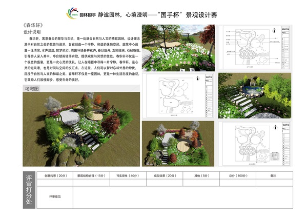 设计理念:春华轩,寓意春天的繁华与生机,是一处融合自然与人文的精致园林。设计理念源于对自然之美的敬畏与追求,旨在创造一个宁静、和谐的休憩空间。庭院中心设置一汪清泉,水声潺潺,如梦似幻。周围环绕各种花卉,春日盛开,五彩斑斓。石径蜿蜒引导游人深入其中。亭台楼阁错落有致,提供观景与冥想的佳处。春华轩不仅是一个视觉的盛宴,更是一次心灵的洗礼,让人在喧嚣中寻得一片宁静。春华轩,是心灵的避风港,也是时间与空间的交汇点。在这里,人们可以暂时忘却外界的纷扰沉浸于自然与人文的和谐之美。春华轩不仅是一座园林,更是一种生活态度的象征它鼓励人们放慢脚步,感受生命的美好。(文/图:彭丽丽 审稿:刘冬)