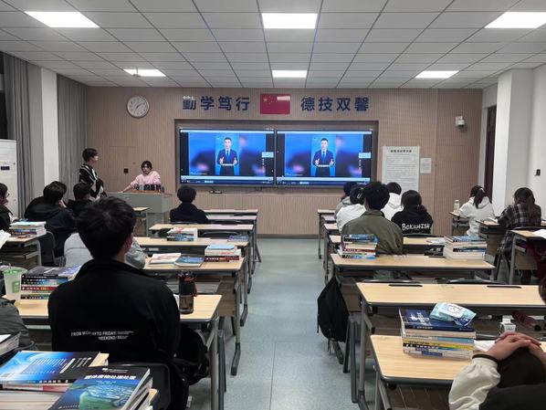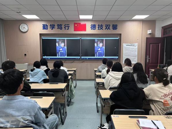 与此同时,大一新生们也自觉学习贯彻习近平总书记考察安徽时讲话精神,他们利用晚自习时间观看了习近平总书记考察安徽的相关视频,通过视频了解了习近平总书记此次安徽之行以文化底蕴深厚的安庆桐城开篇,因一段“礼让”故事和六尺巷中蕴含的“和为贵”理念而闻名于世。