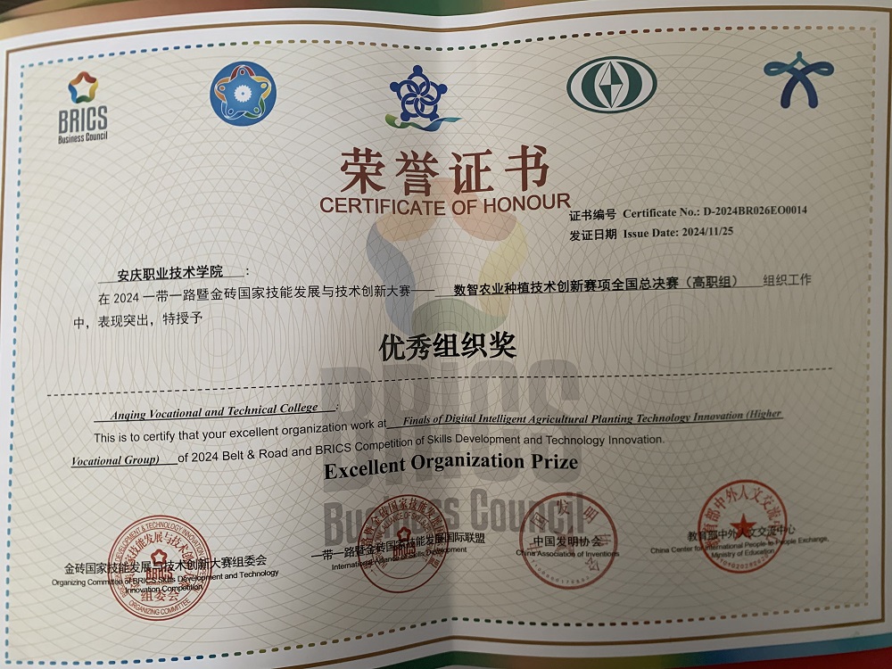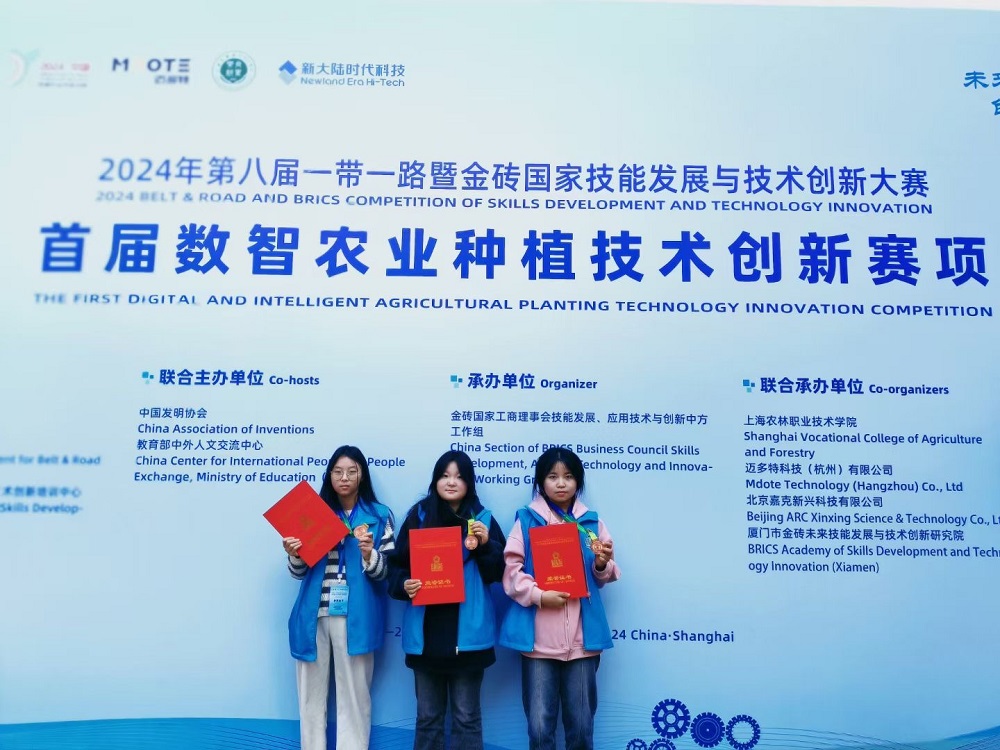 数智农业种植技术创新赛项的竞赛内容包括虚拟仿真考试和实操考试两部分,赛项设计涵盖了农作物种植管理过程中的全方位知识,包括种苗的种植布局、水肥管理、病虫害防控、采收收获等4个环节。经过激烈角逐,植保专业的宋蕊、陈佳莉、宋舒静组成的参赛队荣获二等奖,指导老师李萍和许慧慧获评优秀指导教师,我校荣获优秀组织奖。张南和丁晨指导的王晓慧、徐晓萱、朱雪英组成的参赛队伍荣获三等奖。