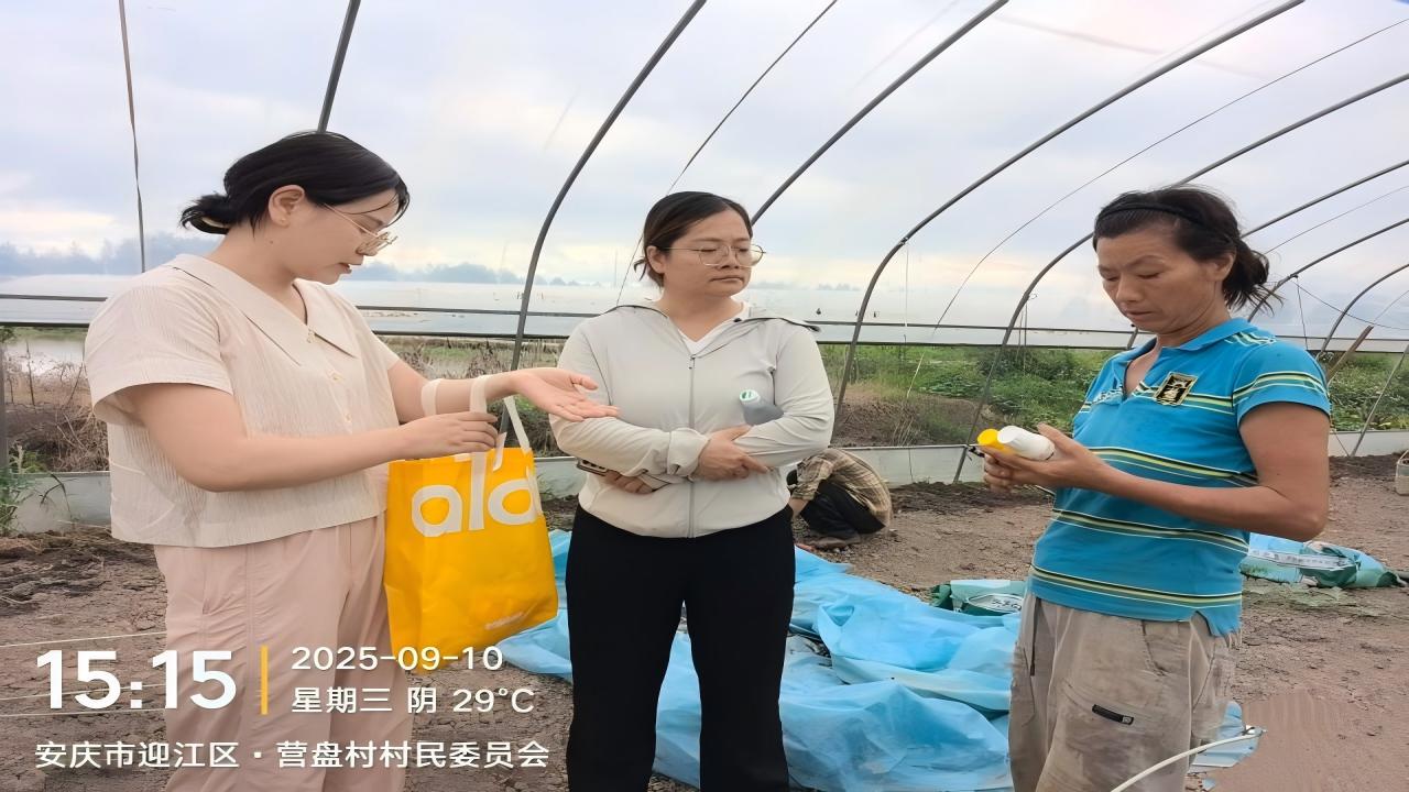 据了解,迎江区营盘村种植大户丁大姐种植番茄、黄瓜多年,今年夏季蔬菜出现虫害,她根据经验使用常规防治方法,效果不佳影响了收成,她通过迎江区科技局向特派团求助。李萍工作室接到求助后,第一时间组织成员来到田间查看情况。工作室成员仔细观察后,迅速给出了专业的防治建议,并现场指导如何进行科学处理。本着绿色安全的理念,工作室为农户带来了专用药剂,详细讲解了使用方法,并贴心提醒注意事项。